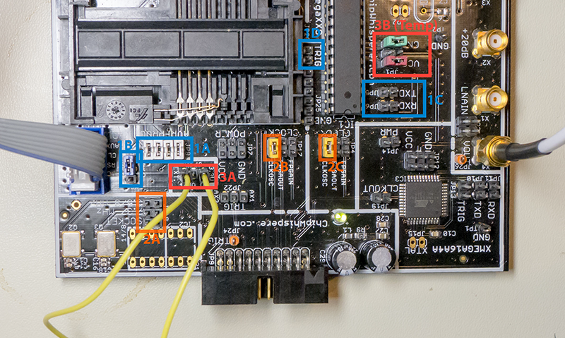 - Remove all jumpers from JP18, which frees up the 'CLKOSC' net on the PCB.